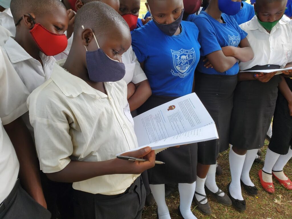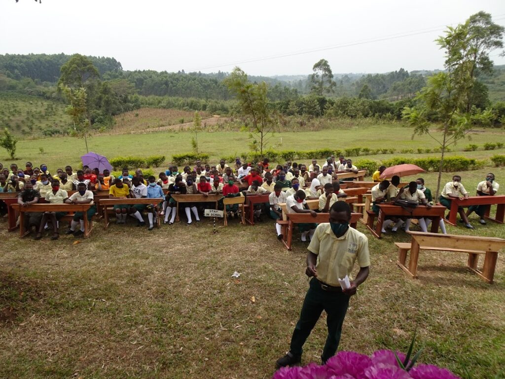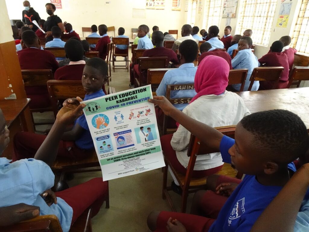 Our Peer Education Rwenzori (PER [previously Peer Education Kabarole]) program provides peer-based health education to over 9,000 students in schools in the Rwenzori region of western Uganda. With the reopening of schools, PER worked to raise awareness of safe practices such as masking, handwashing and physical distancing to help prevent the spread of COVID and other respiratory infections. Many rural youth had not heard about these practices while in their villages and it was important that we were able to equip them with the knowledge they needed to stay safe.